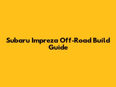 Subaru Impreza Off-Road Build Guide